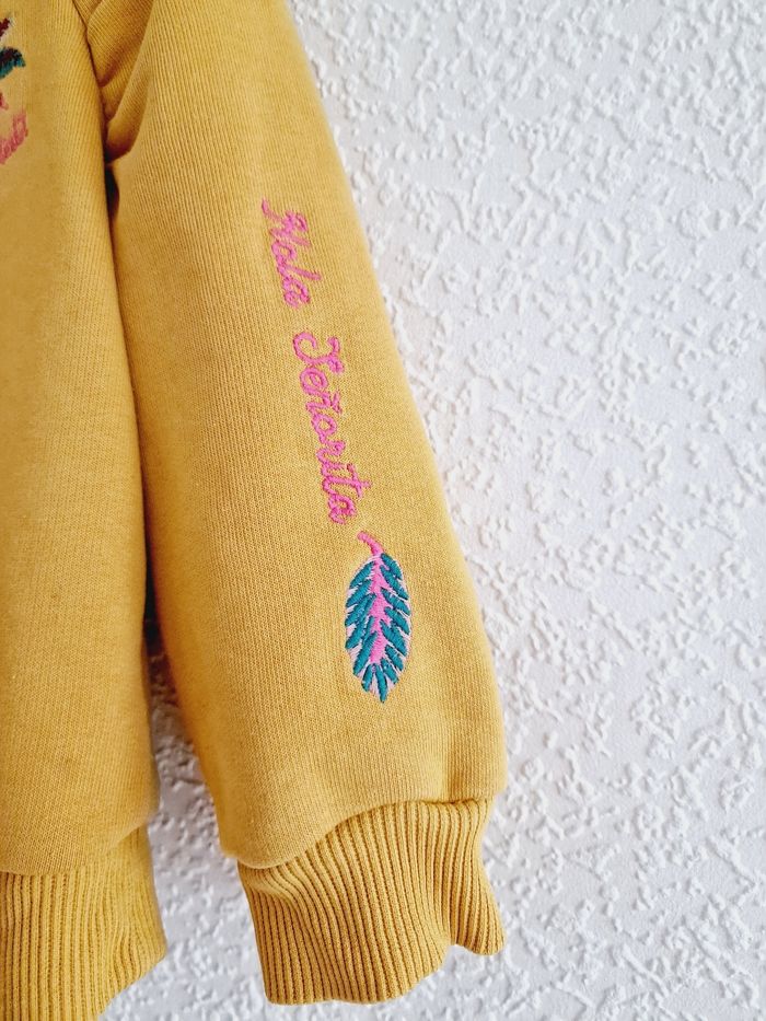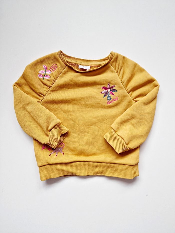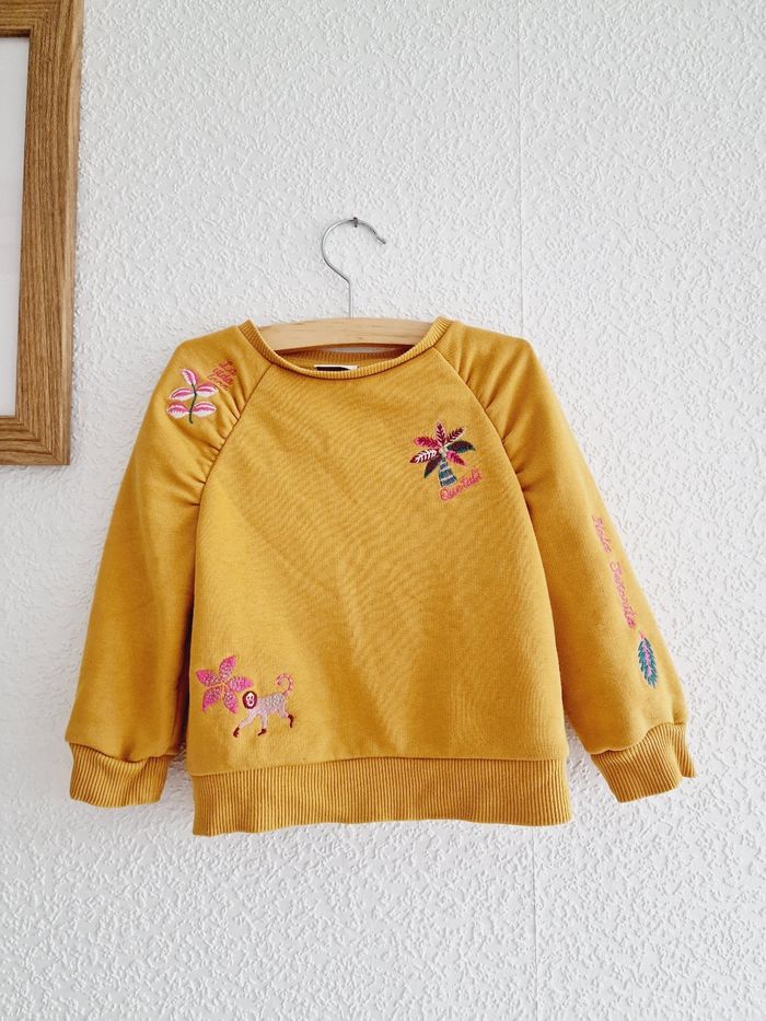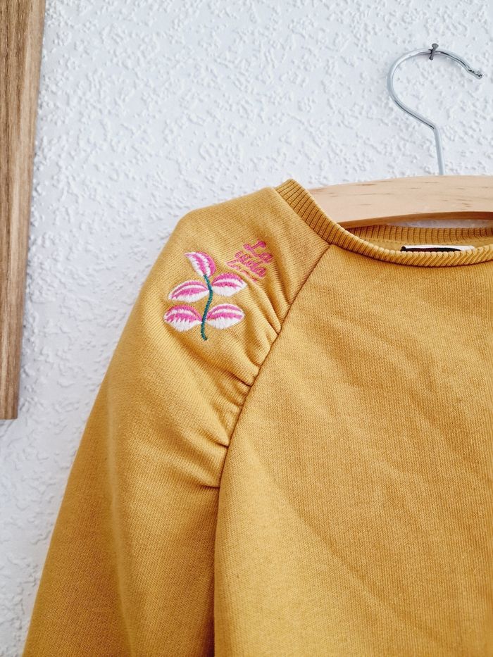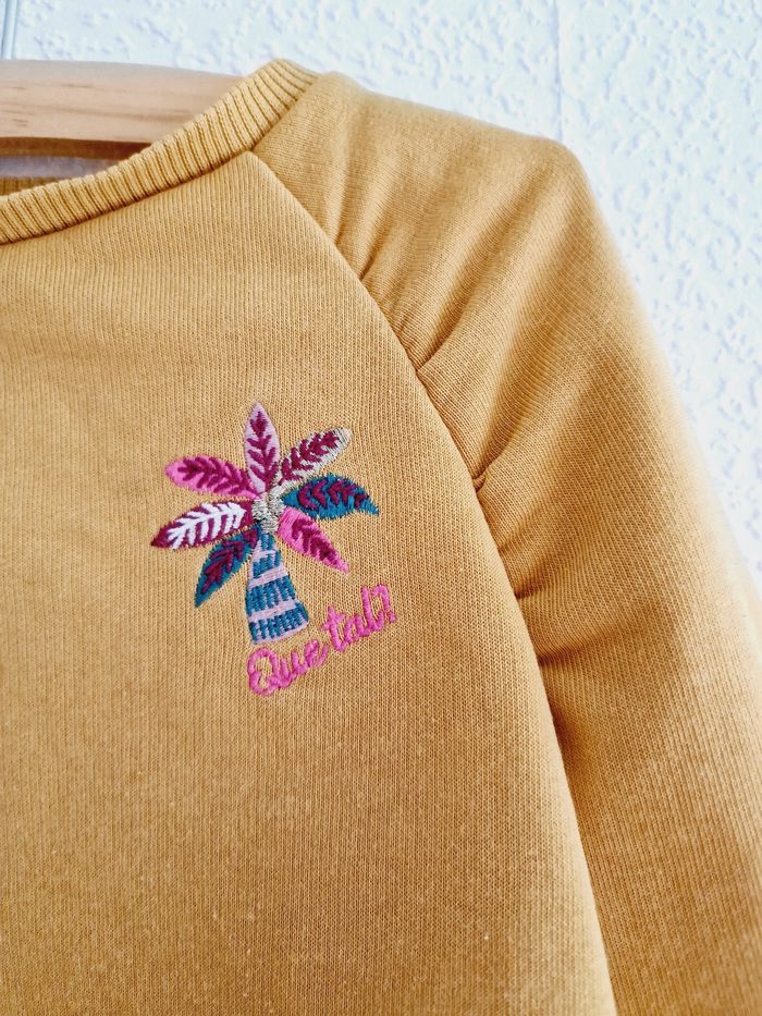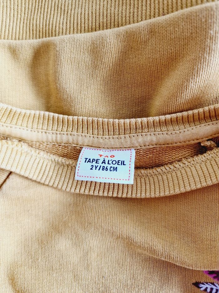 Tous mes articles Tape À L'Œil : #taosev Tous mes pulls : #pullsev Tous mes habits ♀️ 18 mois : #18moissevfille Tous mes habits ♀️ 2 ans : #2anssevfille 🚨 Prix fixe Sweat / pull manches longues, col rond Marque : TAPE À L'ŒIL Couleur : jaune moutarde Taille : 2 ans - 86 cm État : bon état Très légère ligne le long du pull. A peine visible (voir dernière photo) 64% coton ; 36% polyester Retrait sur place ou envoi.