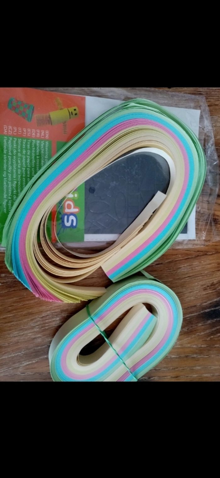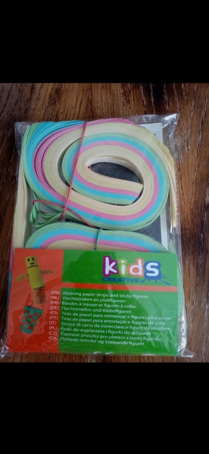 Bandes à tresser et à tisser en 2 largeurs 1cm et en 1,5 cm. (voir photo une bande déchiré, peu manquer quelques bandes)