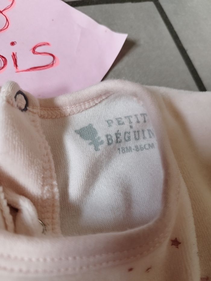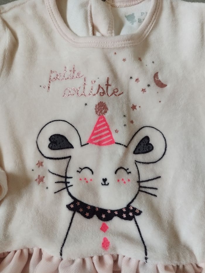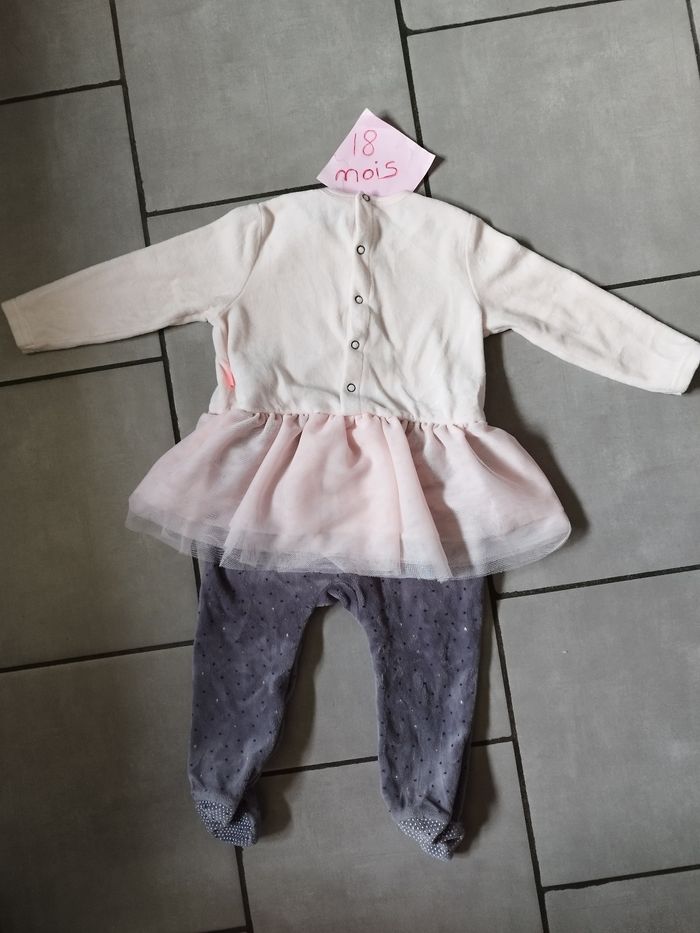 Pyjama en velours a tutu, Rose clair et gris foncé, Ouverture à l'entrejambe, facilite le changement de couche. NEUF jamais porté ! Taille 18 mois