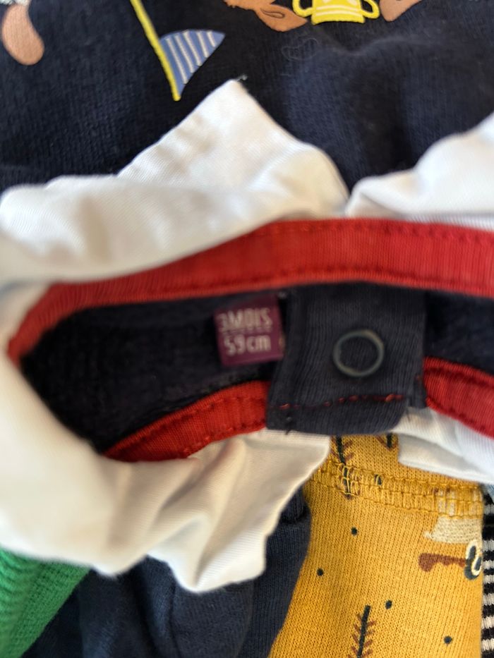 Lot de 5 pantalons et 1 pull taille 3 mois marque sergent major, tape a l’œil et kiabi