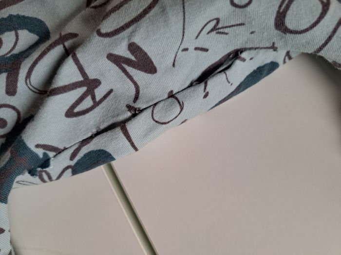 Porté, bonnet légèrement décousu fai