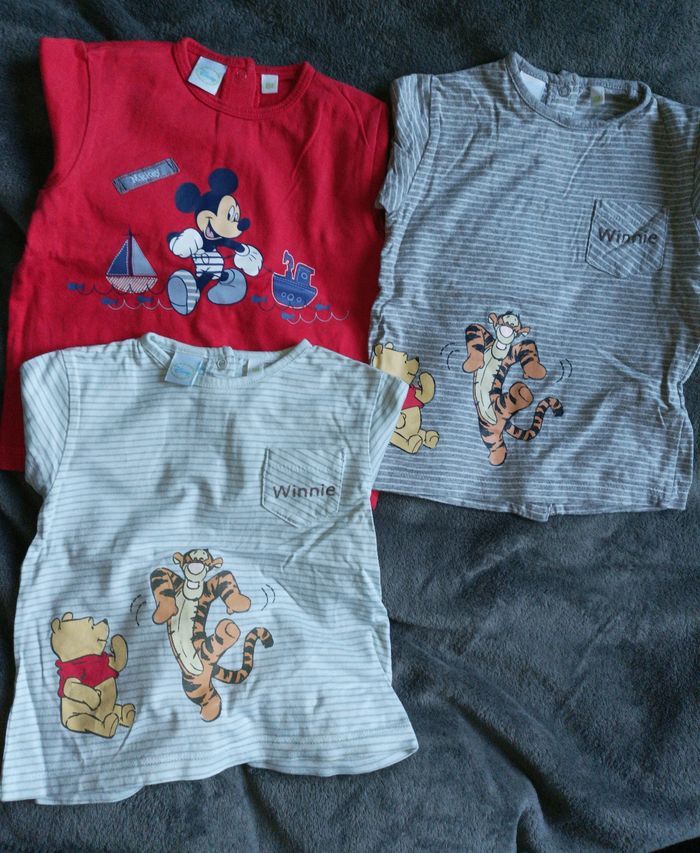 Lot de t-shirt - 2 Kiabi avec une petite poche devant - 3 Disney avec ouverture pression derrière Bon état
