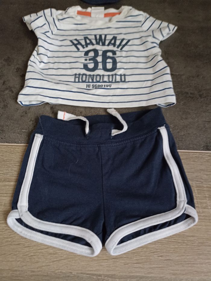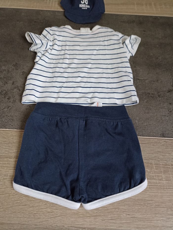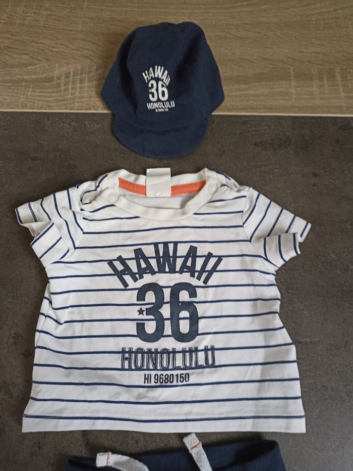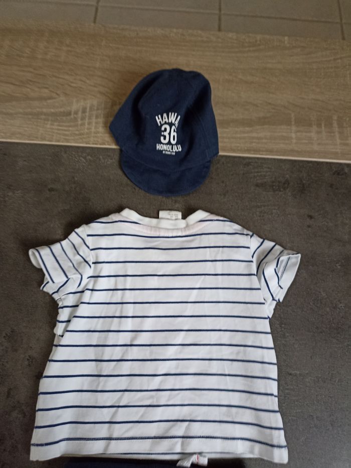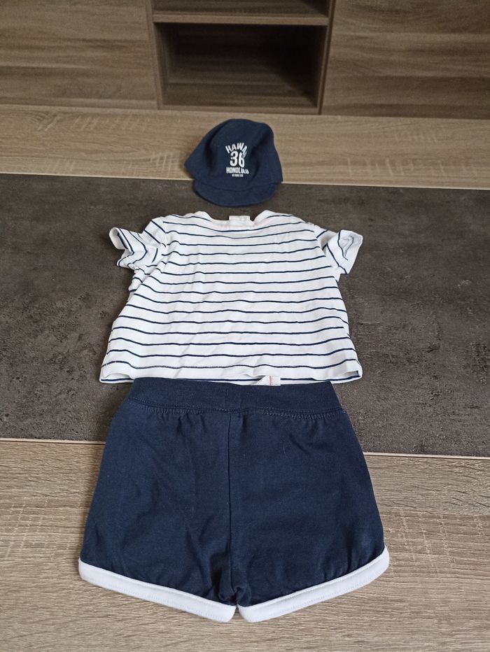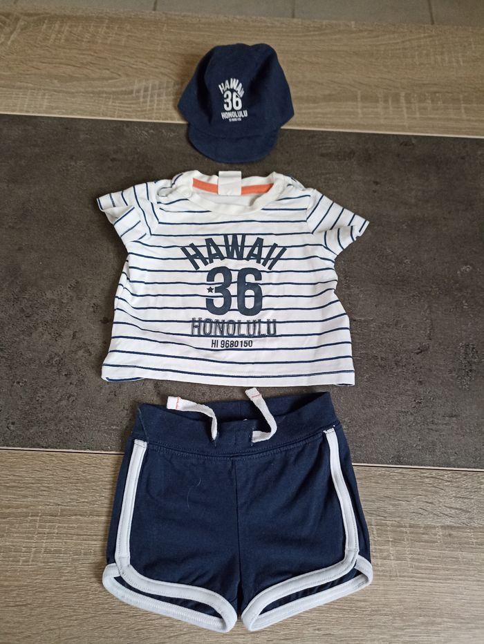 Un short, un tee-shirt manches courtes et une casquette Taille 0/1 mois