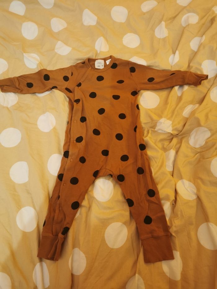 Pyjama Zara mixte, manches longues, SANS PIEDS, marron à pois noir Pressions à l'avant. EXCELLENT ÉTAT. Taille 9/12mois- 80cm