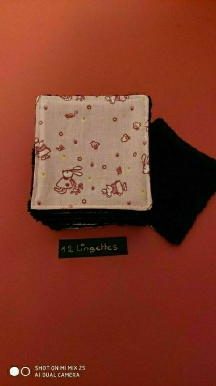 Tissu eko-tex français et éponge bambou noir, 10 X10 cm pour bébé et démaquillante pour les mamans 😀