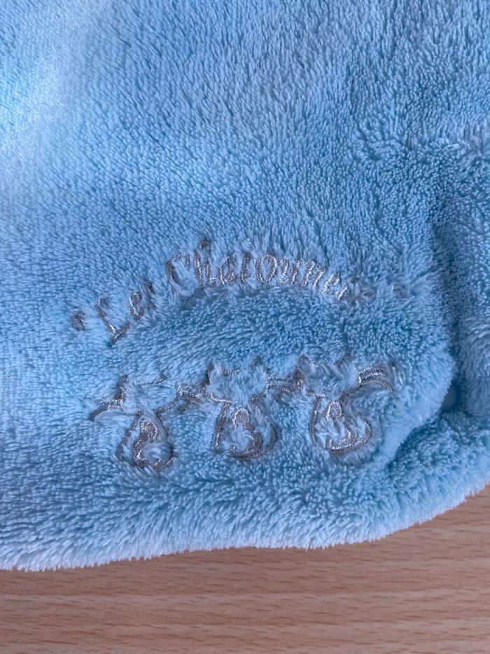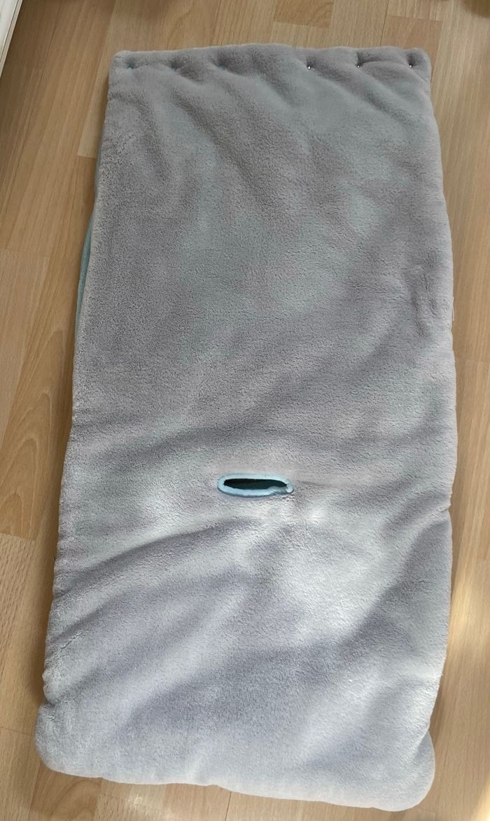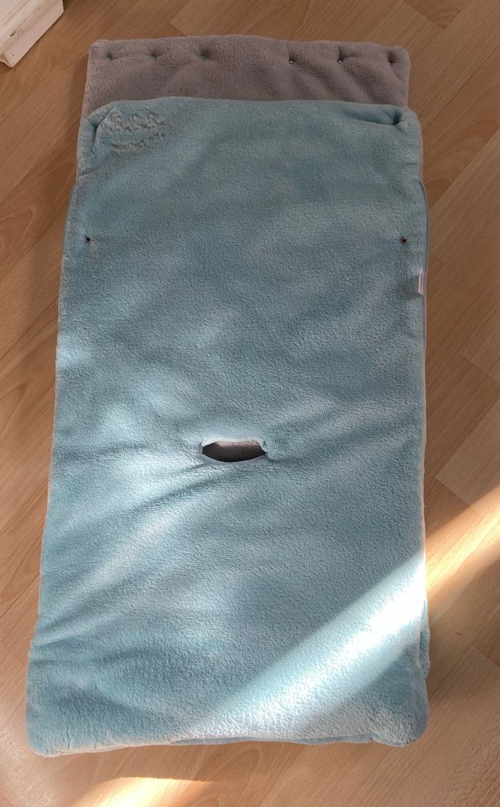 Joli nid d’ange. Possibilité de le mettre dans le cosy, la poussette, le landau ou le siège auto Sans étiquettes car coupées et lavées en préparation à la naissance mais jamais utilisé