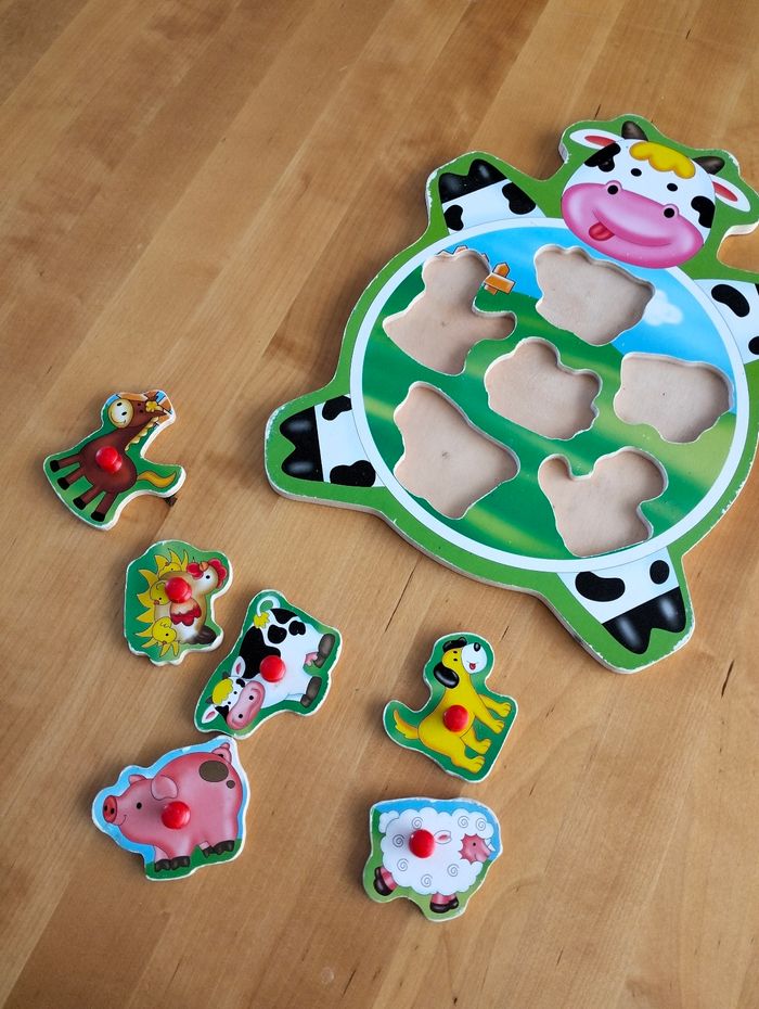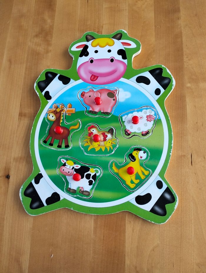 Puzzle en bois 6 pièces (une vache, un chien, un cheval, un mouton, un cochon et une poule) 📸Pour davantage d’informations ou de photos n'hésitez pas à me contacter.