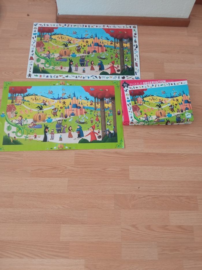 Vends un puzzle d observation de la marque Djeco Il est complet et comporte 54 pièces ainsi qu un poster sur les contes à 10 euros