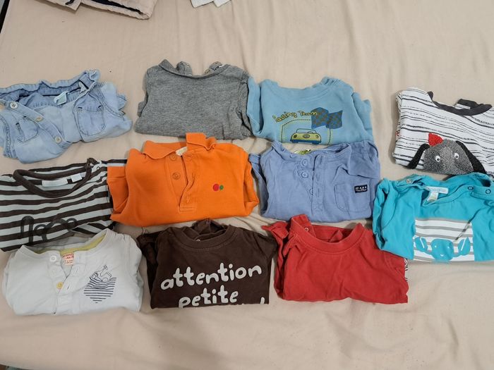 Vend lot tee-shirts manches longues garçon taille 6 mois porté quelques fois