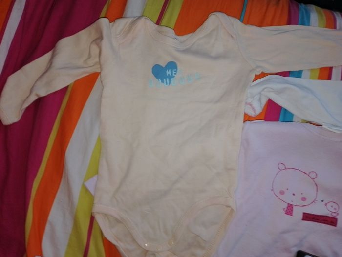 Body 24 mois 2euro pièce * jaune mes doudous * Rose avec fille et oiseau un bisou pour toi * Blanc bord rose kimadi * 2 identique dont 1 très légèrement taché a l'arrière mais non visible sur les photos