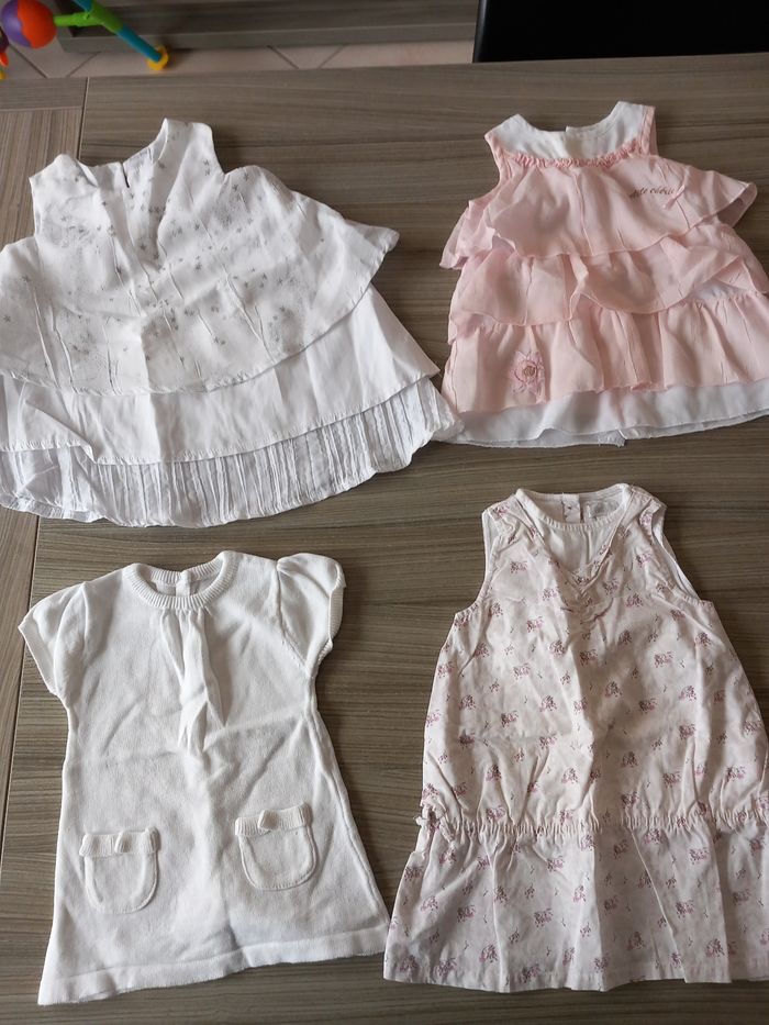 Colis comprenant 4 bodys manche longue 2 pyjamas velours 2 pyjamas léger 1 gilet 4 robes 3 robes culotte 1 robe épaisse 2 tenues été 1 body manche courte 1 collant 1 tee shirt Le lot est indissociable et vendu en l état. Certaines affaires peuvent avoir des petites taches celles ci sont données ensemble très correct. Les affaires sont vendus à moins de 1eur pièce. Marque dans le lot : sergent major, orchestra, obaibi, kiabi