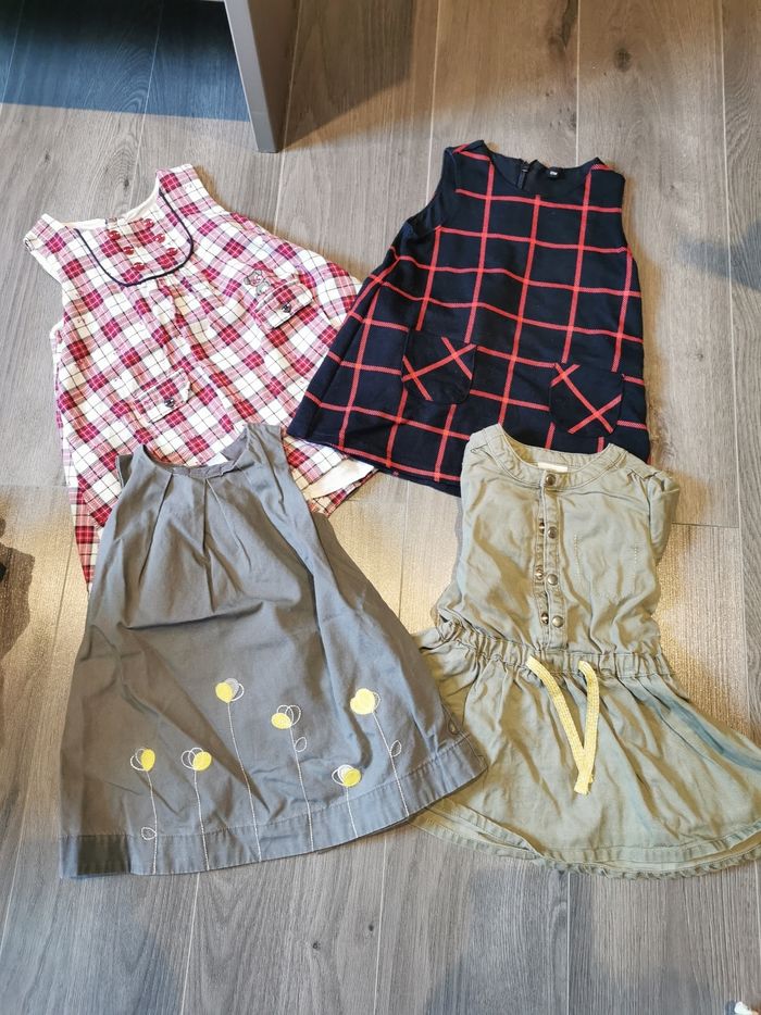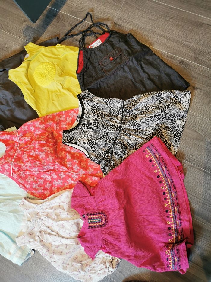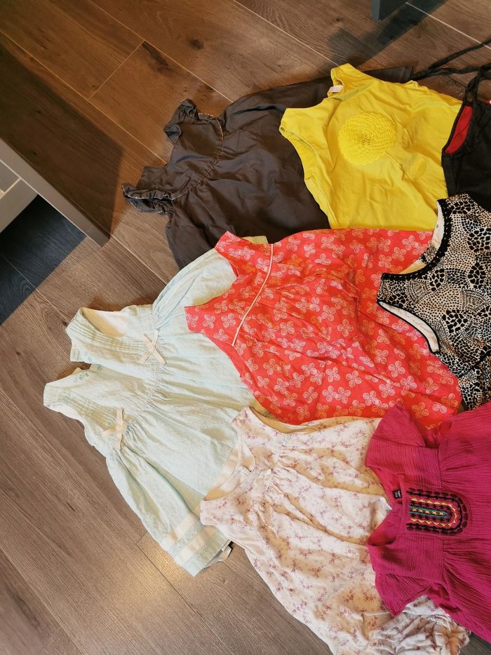 En bon état de tous Environ : 11 pantalons 15 robes 11 robes short 6 leggings 23 tee shirt manche courtes longue et débardeur Gilet pull Des bodys