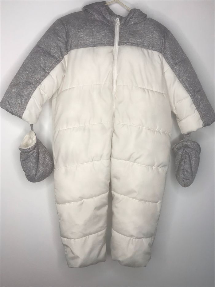 Combinaison enfant 18 mois blanc et gris avec les gants attachés et possibilité de les détacher
