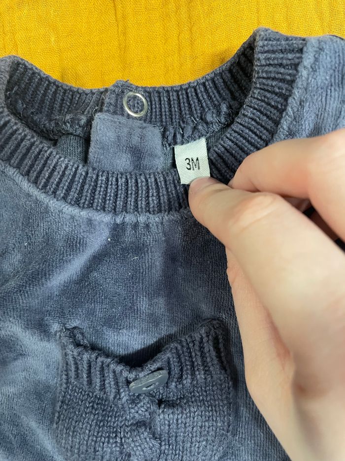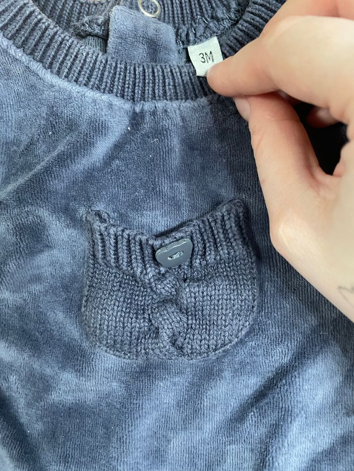 Pyjama bleu nuit/marine tout doux. Bon état voir photos. Très mignon. Taille 3 mois. Marque je ne sais plus. PRIX MINI SUR TOUT MON DRESSING ❤️