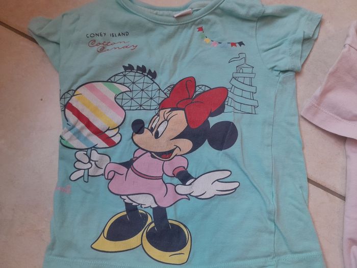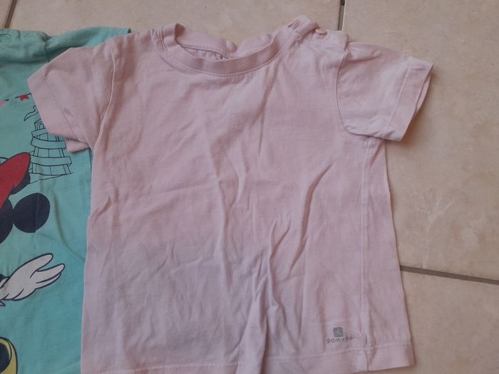Lot de 2 tee-shirts manches courtes. Un de marque Mickey avec le dessin de Minnie et 1 uni rose de marque decathlon. Possibilité de vendre séparément