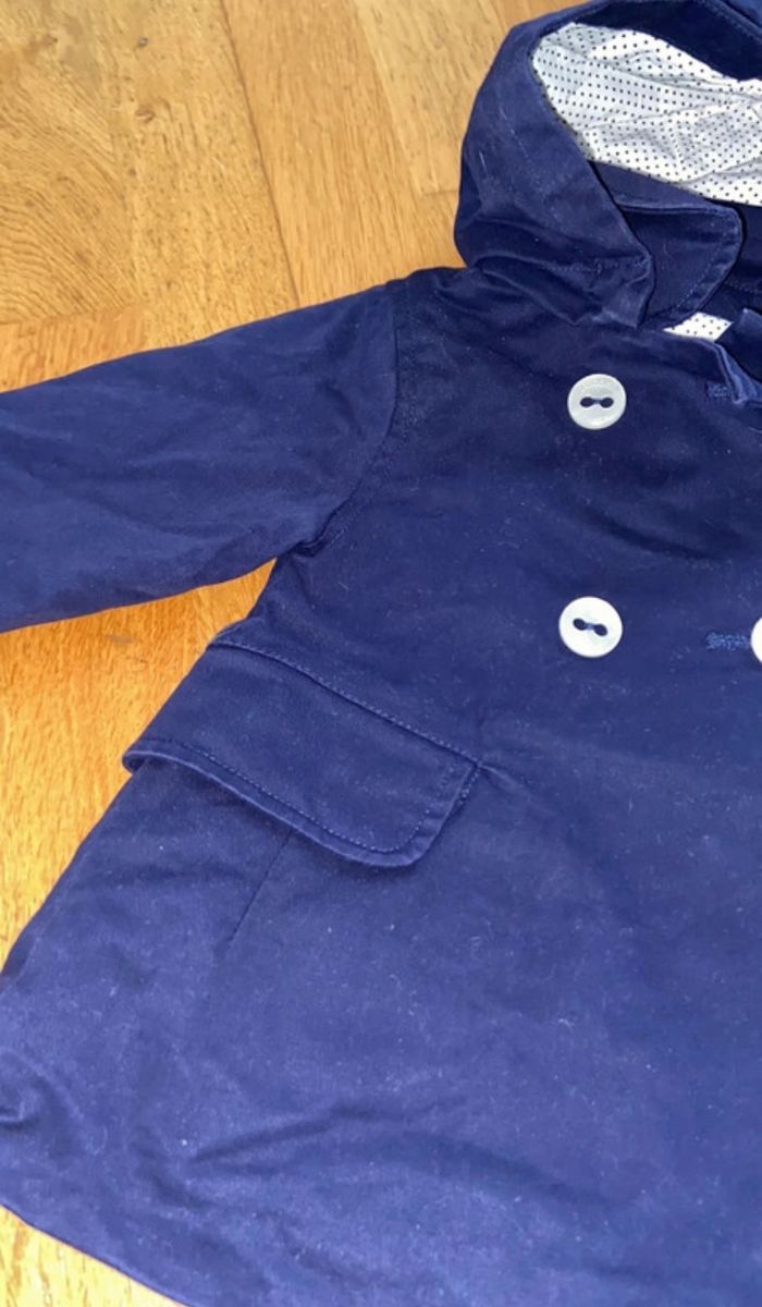 Manteau bleu marine en très bon état Style caban, capuche amovible Parfait pour la mi saison #jacadi #jacadifille #manteaufille #manteaujacadi