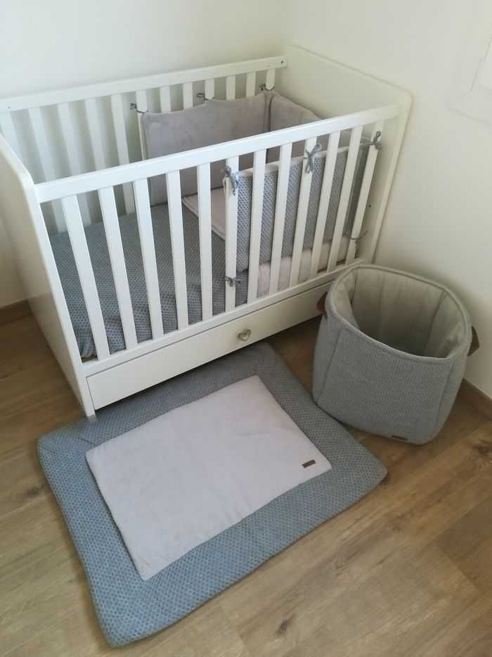 Tour de lit en excellent état de la marque baby's only. Dimensions 3x ( 60x35cm ) Déhoussable grâce à trois zip et lavable en machine. Intérieur en polaire et extérieur en nid d'abeille. Je vends en plus une couverture, un tapis et un panier de la même série si vous êtes intéressé.