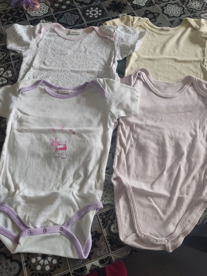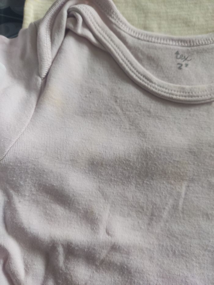 4body manches courtes. Le rose un peu tâche voir photo. 24 mois