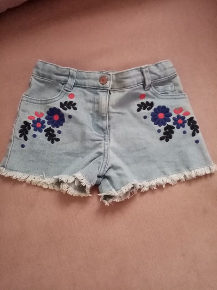 Jolie short en jeans avec des fleurs En très bon état. Taille 3 ans