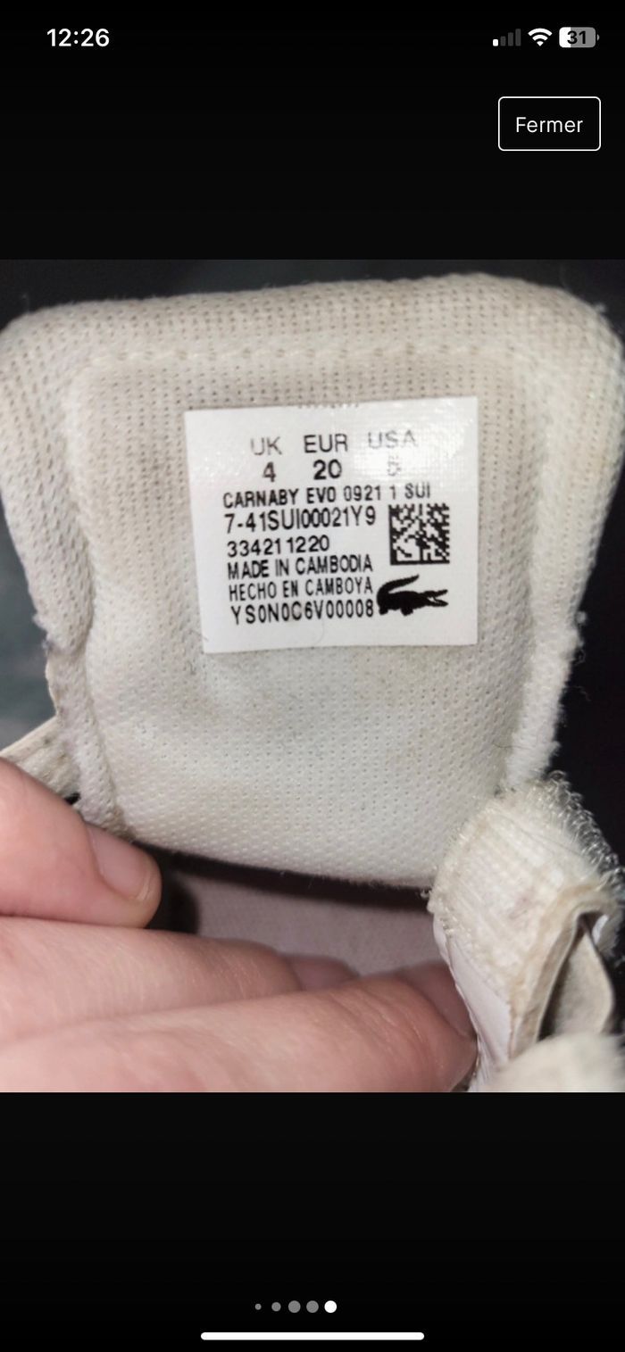 Bonjour, je vend les chaussures Lacoste de ma fille en très bon état