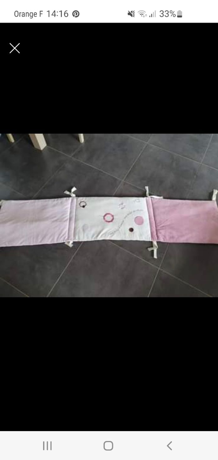 Vends tour de lit + couette et draps housse blanc. Convient pour un lit bébé