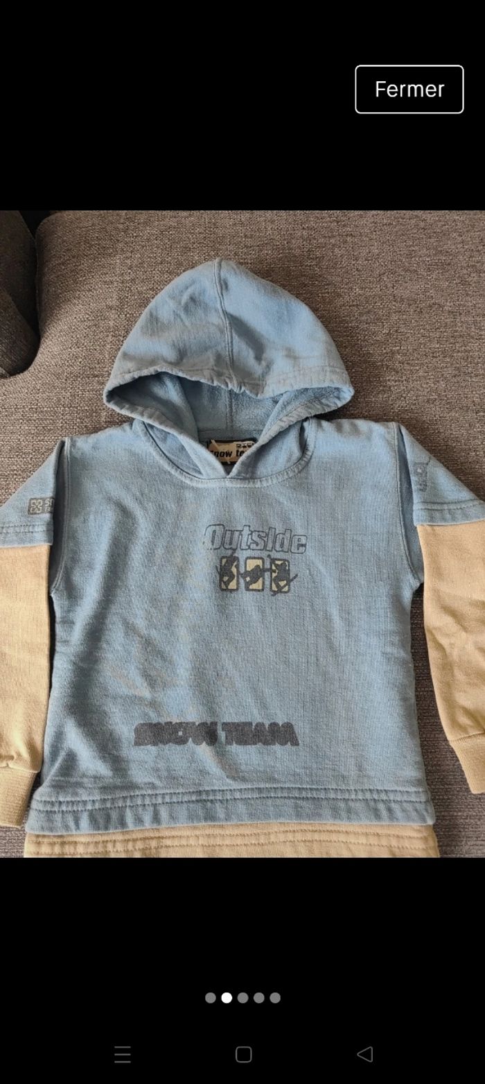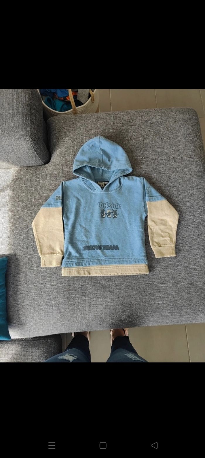 Sweat a capuche (manque la ficelle a la capuche et point de couture fait sous l'aisselle)