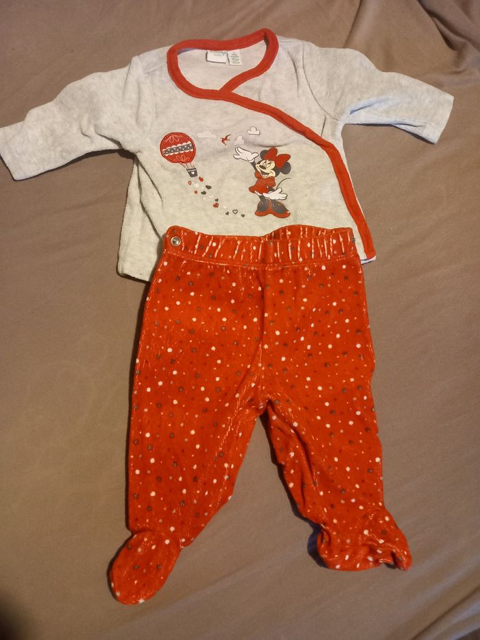 Pyjama 2 pièces. Le haut est caché coeur. Pression pour accrocher le haut et le bas ensemble. Très bon etat 3 mois