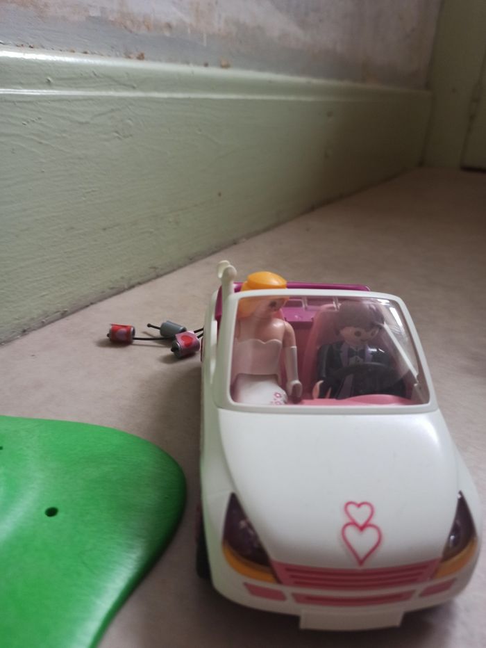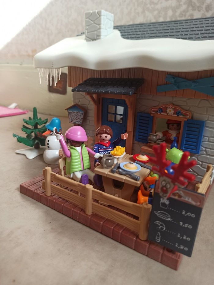 Chalet des skieurs et accessoires , aire de jeux, arche et voiture des mariés.