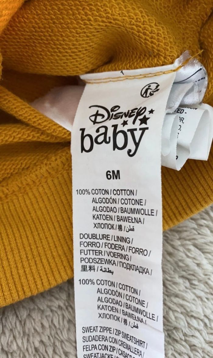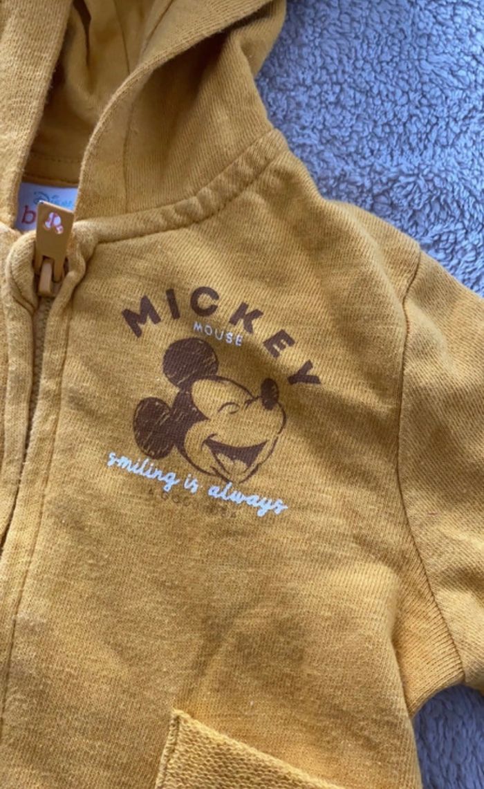 Sweat zippé Disney baby par Kiabi taille 6 mois,bon état , jaune moutarde avec motif Mickey