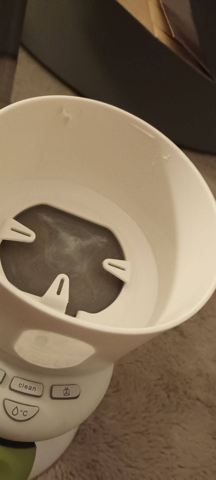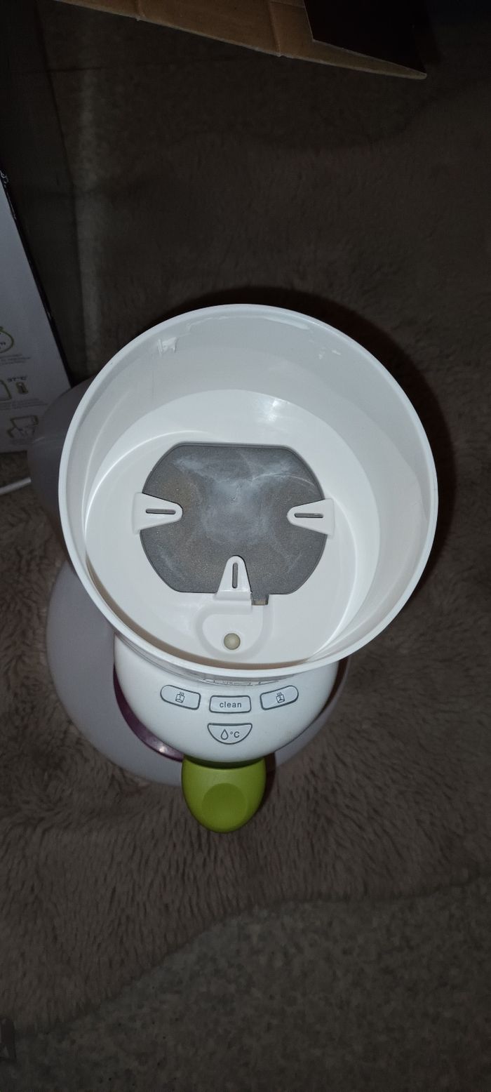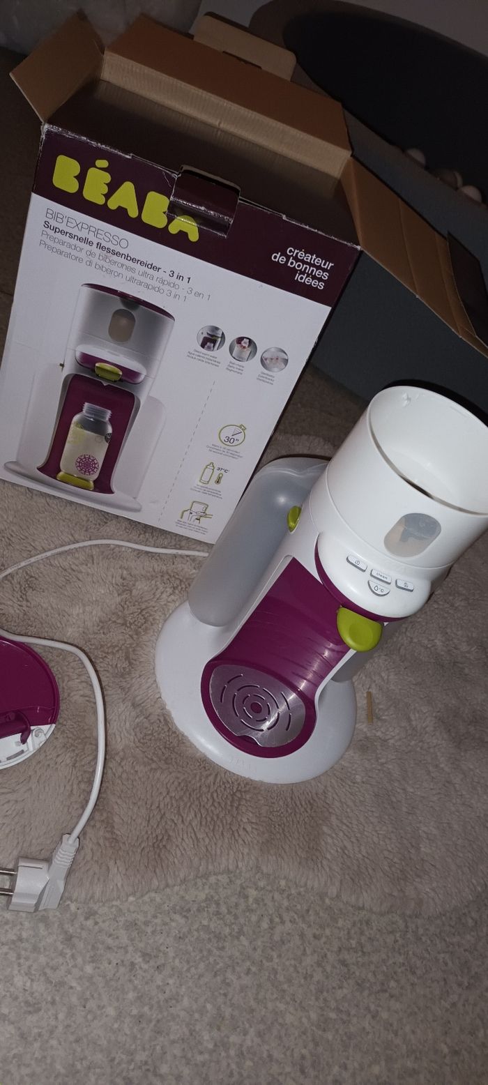 Chauffe biberon avec boîte ( petit morceau de plastique casser au niveau du couvercle mais ne gene en rien l'utilisation) juste mèttre couvercle et enlever pour y mettre leau