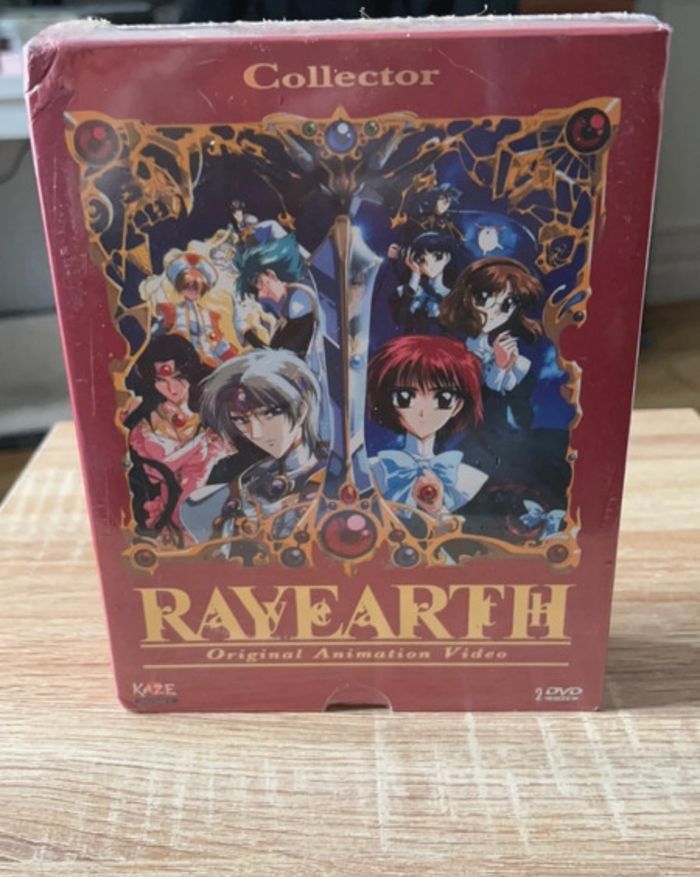 offret DVD Rayearth OAV Description Trois collégiennes, Hikaru, Umi et Fuu, firent le serment d'une amitié éternelle sous l'arbre à voeux de leur école. Pourtant, leur passage au lycée et les circonstances familiales devaient les amener à se séparer irrémédiablement... Une étrange créature du nom de Mokona entendit leur appel et exauça leur souhait, entraînant les trois filles dans une histoire incroyable. Des forces magiques issues de Cephiro, un monde parallèle, menacent la Terre de destruction et la survie de la planète échoue aux mains des trois amies. Contre la magie démoniaque de Cephiro, les élues de Mokona vont devoir réveiller les trois animaux esprits sommeillant en elles afin d'accomplir leur mission. Mais pourquoi Cephiro veut détruire la Terre ? Et quelle est cette légende scellée sur cette terre que l'on nomme Rayearth ? #manga #neuf #japanimation #CLAMP #collector #bonneaffaire #années90 #magicalgirl #girlpower