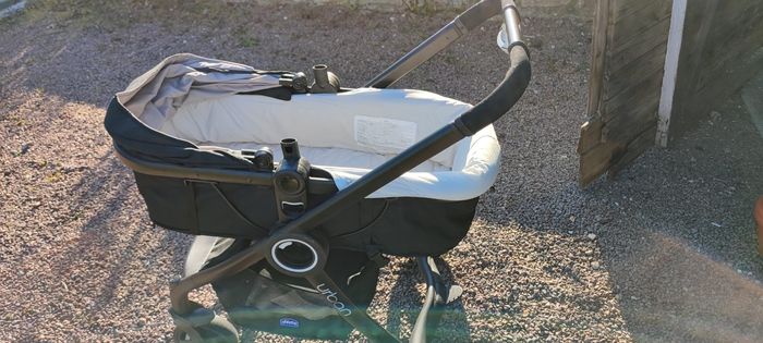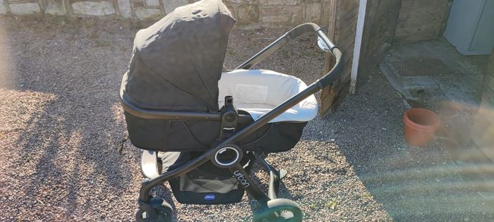 Bonjour Je vends une poussette combinée landau et siège auto de la marque Chicco. Le tout est en très bon état. Prix neuf 450€ Je la vend 200€