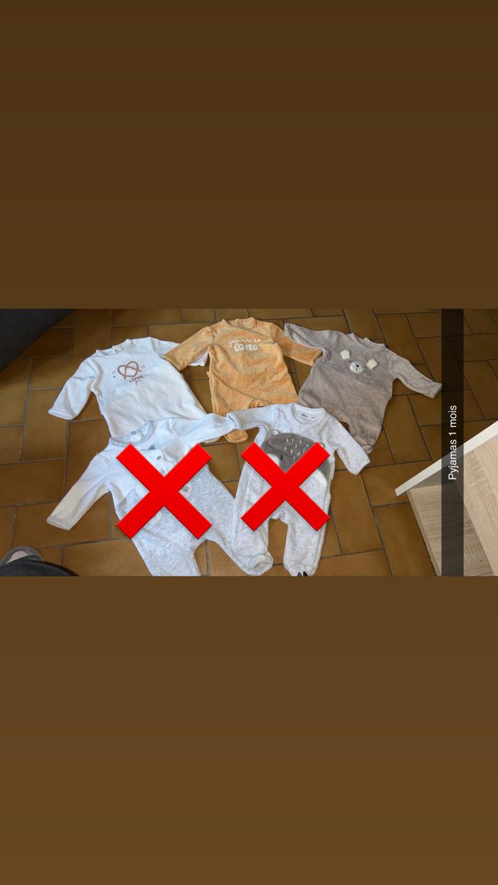 Lot de 3 pyjamas. Très bon état. Taille 1 mois. Kiabi.
