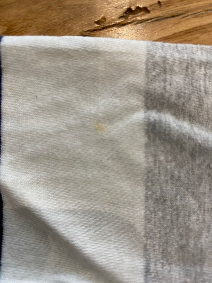 Polo rayé manche longue en très bon état. Petit tache sur la manche ( voir photos 3)