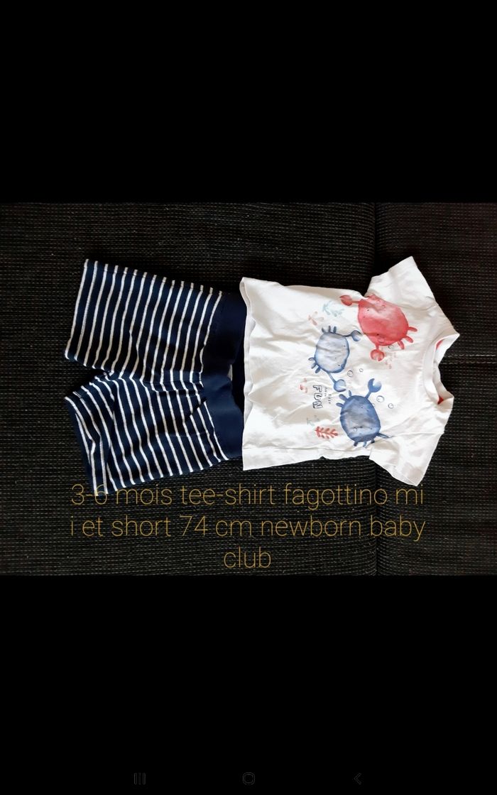 Ensemble bébé tee-shirt blanc et short marine rayé 74 cm