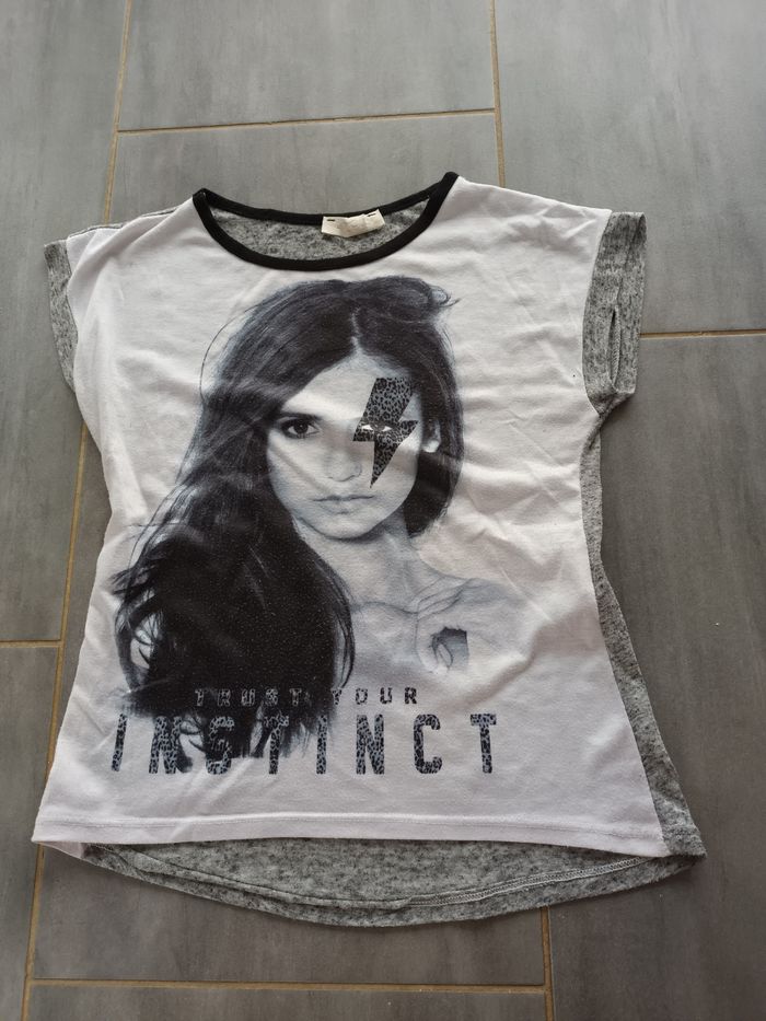 Bonjour je vend un t shirt couleur gris et blanc taille 10 ans