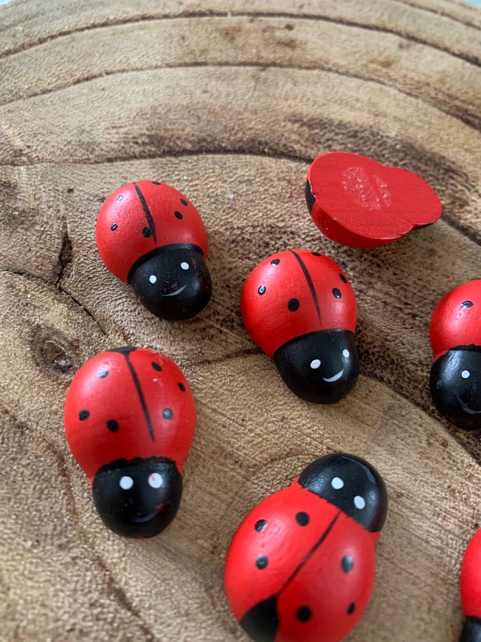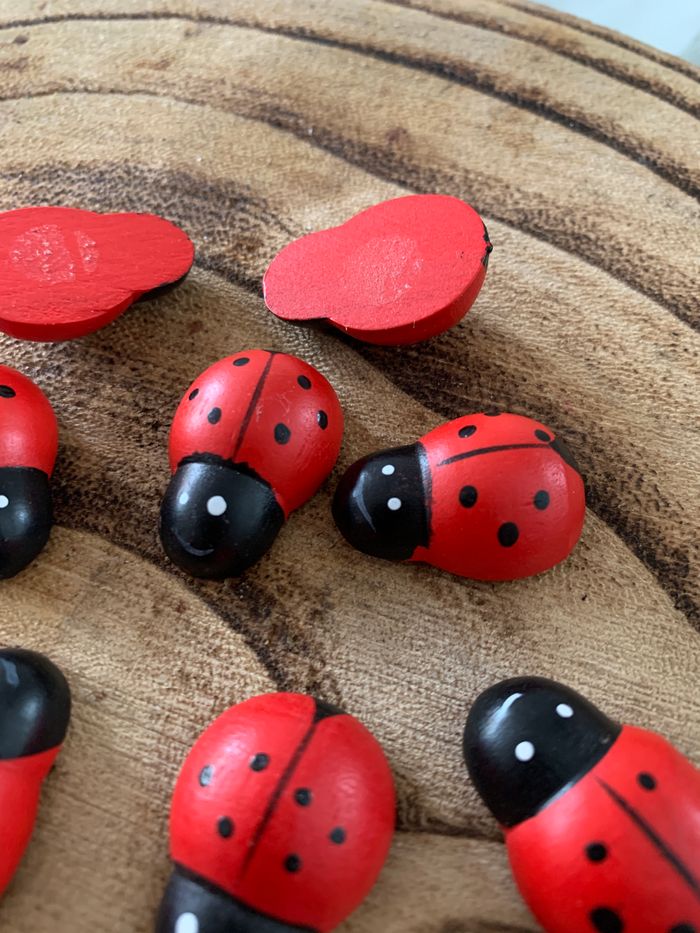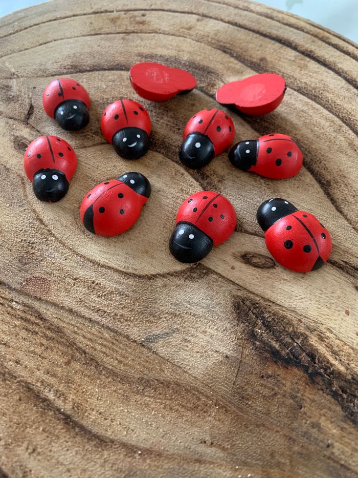 Lot de 10 coccinelles rouge et noir en bois à coller