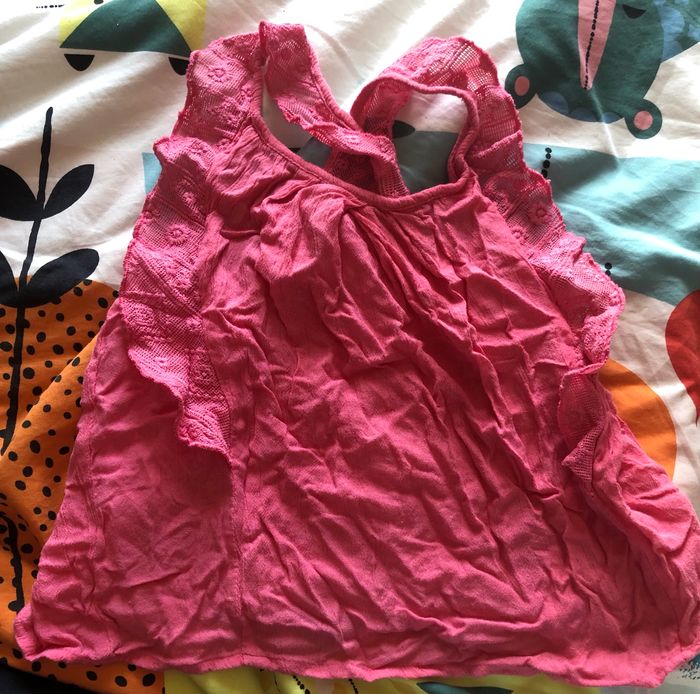 Adorable haut à bretelles rose en très bon état. Taille 3 ans.