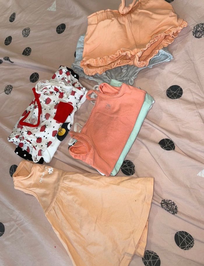 Lot été fille en 6 mois 2 short 7 body 1 combi 1 robe