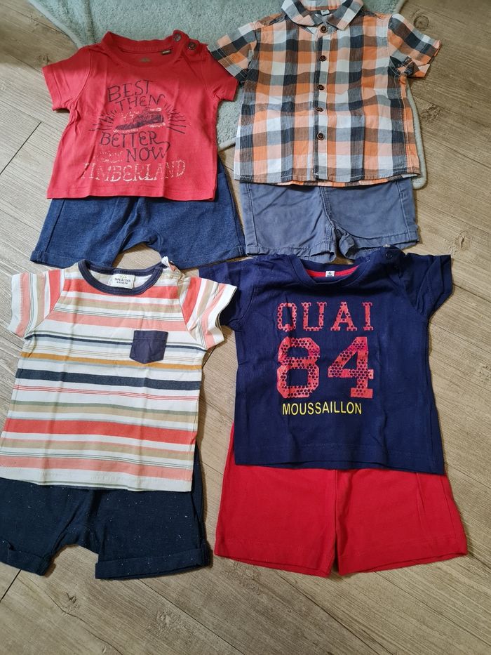 Lot 4 ensemble été 6Mois Short/tee-shirt Différentes marques Timberland, tape à l'œil... Très bon état, jamais porté pour certains vêtements