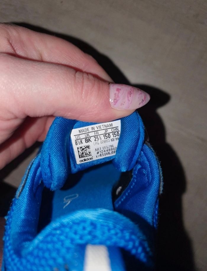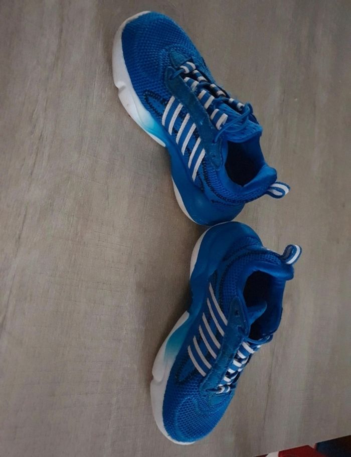 Basket adidas taille 25 1/2, très peu mise. Petites imperfections a peine visible sur le devant (bien regarder la 1ere photo)