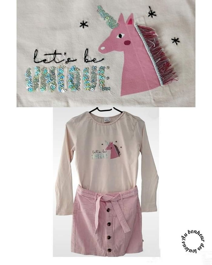 10 ans ensemble teeshirt tape a l oeil et jupe côtelée avec ceinture Okaïdi