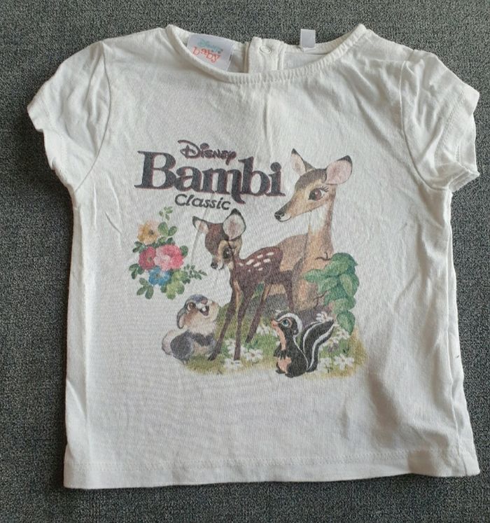 A vendre tee shirt Bambi, taille 9 mois. Marque Disney Baby. En très bon état. N'hésitez pas à jeter un coup d'œil sur mon dressing (d'autres vêtements en vente). Une réduction dès 2 articles achetés !