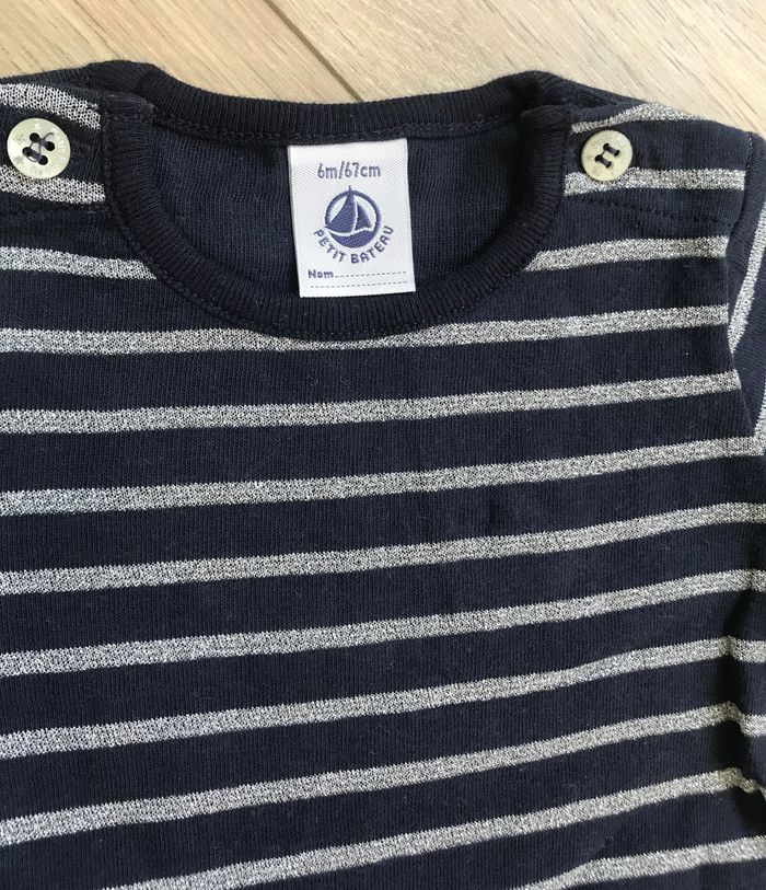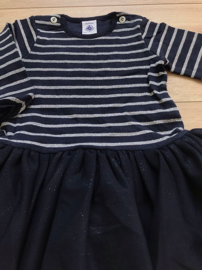 Robe petit bateau 6 mois marinière marine a rayures argentées pailletées, jupe marine en tulle 18€