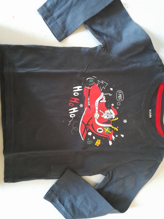 Joli tee-shirt manches longues pour les fêtes. En bon état. Tout petit trou vraiment minuscule dans le bas du tee-shirt