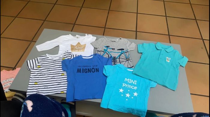 Lot de 6 tee shirt dont 1 manche longue En très bon état aucune tache Plusieurs marques 6 mois Envoi rapide et soigné 🌸