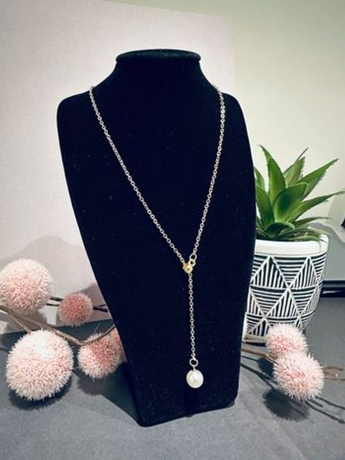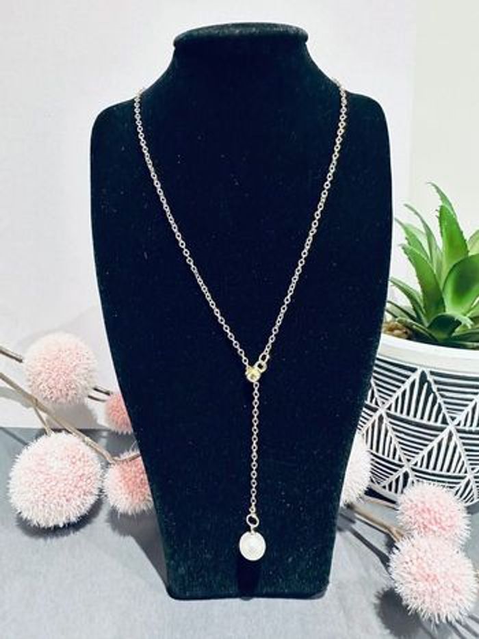 Collier fin en argenté pendentif perles Collier neuf Pendentif coulissant peut se régler en ok plus court ou en plus long Bijoux sans nickel et sans plomb