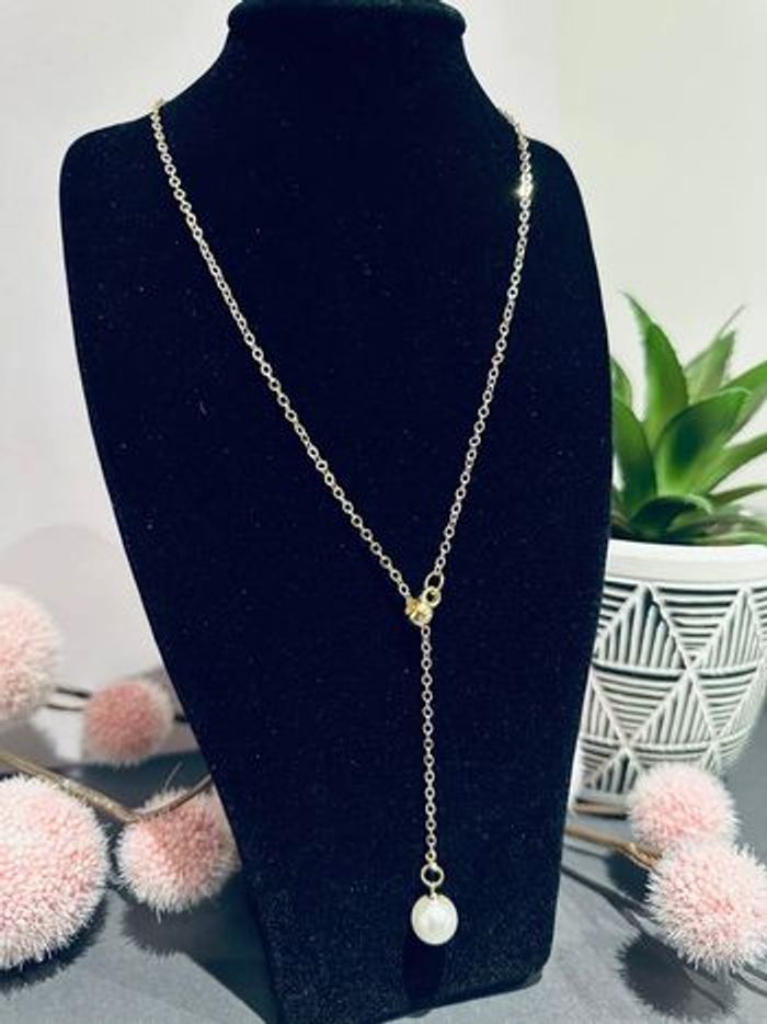 Collier fin en argenté pendentif perles - photo numéro 1