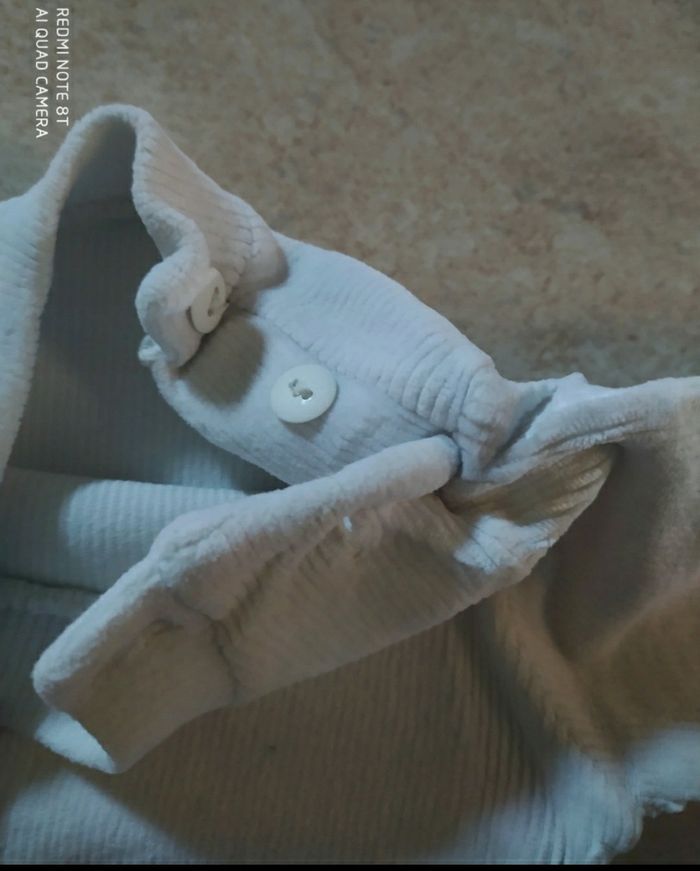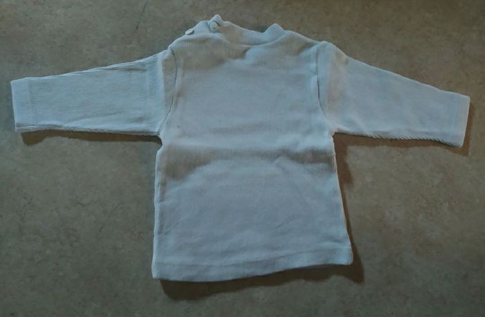 T-shirt blanc 6 mois Très doux 2 boutons qui l'habiller facilement Très bon état