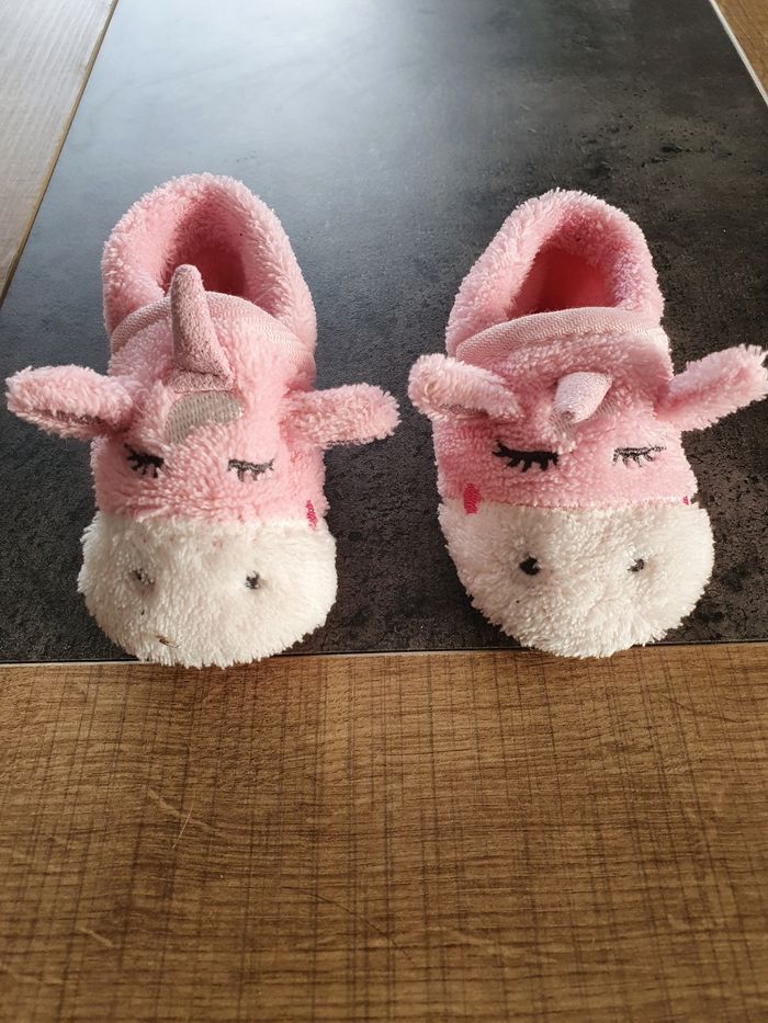 Chaussons chauds thème Licorne, sans marque, taille 6/12 mois, très peu portés.